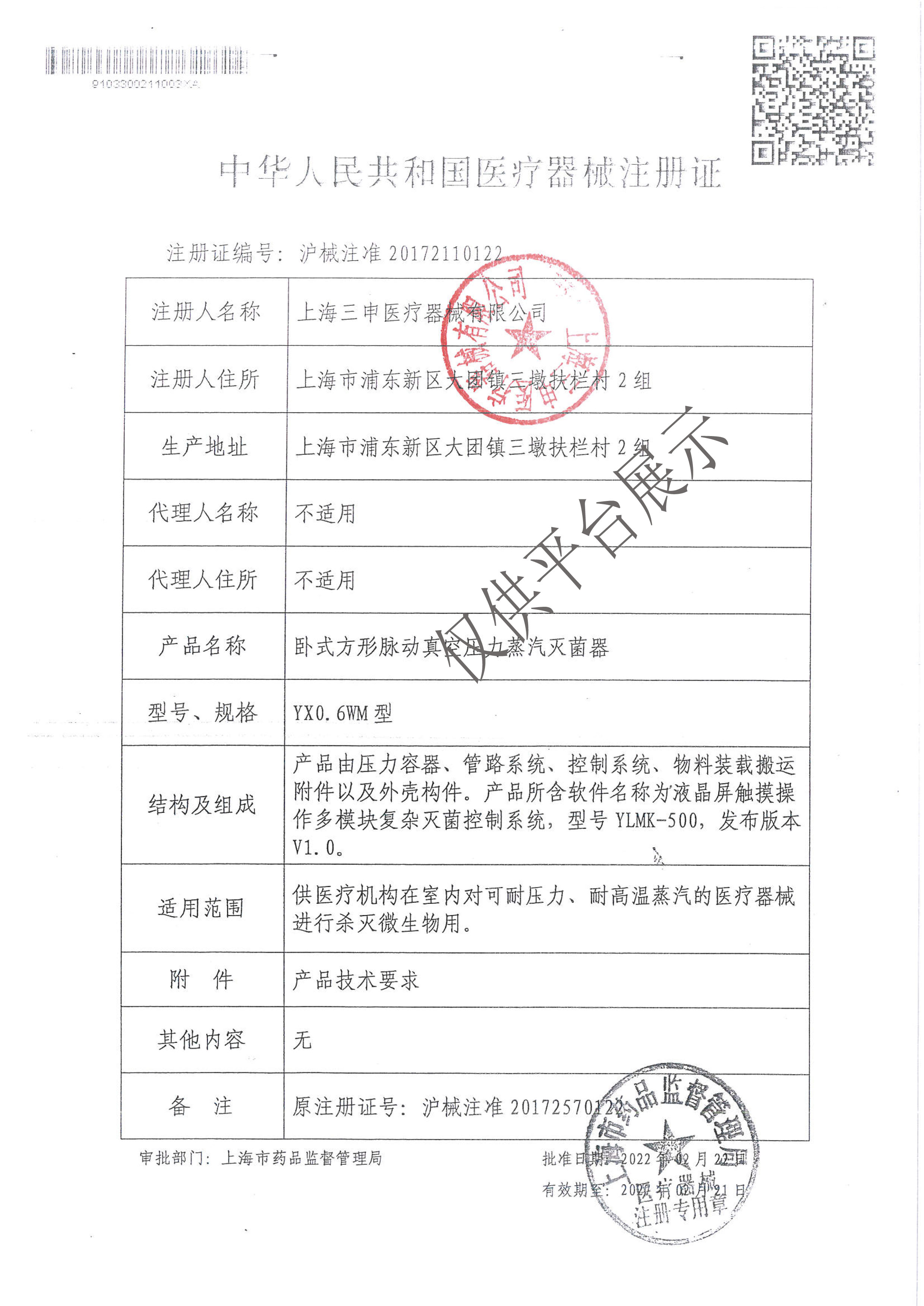 | 產(chǎn)品名稱 : | 三申臥式方形脈動真空壓力蒸汽滅菌器YX0.6WM |