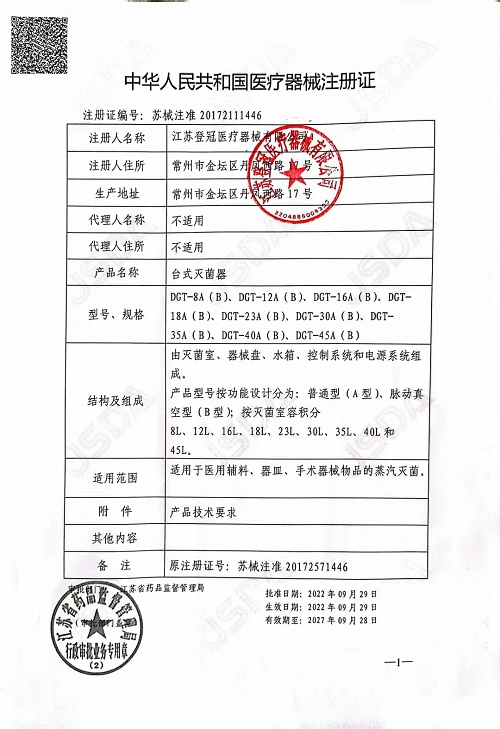 產(chǎn)品名稱(chēng) : 登冠臺(tái)式滅菌器DGT-12B型